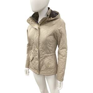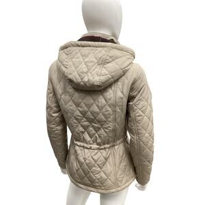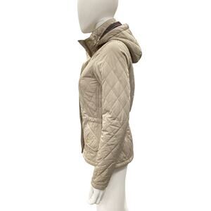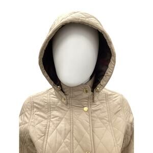 Stylish quilted jacket. Features gold-tone buttons. Perfect for layering.