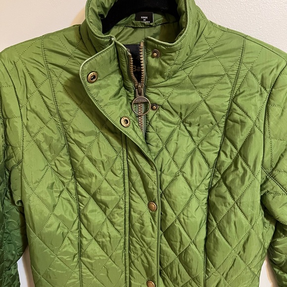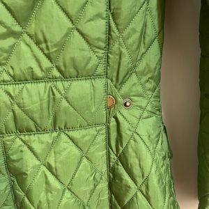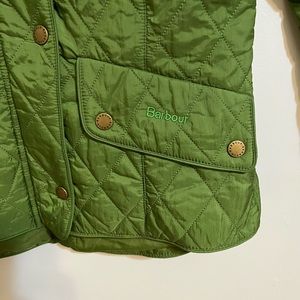 Quilted jacket in absolutely perfect condition. Size is UK 8 but fits like a 2 or an XS. Color is bright mossy green. Has some very cool details definitive of Barbour styling.