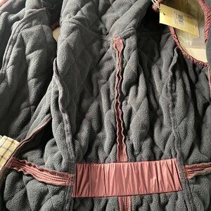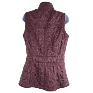 Stylish quilted vest. Sleeveless design. Front pockets with button closure. Perfect for layering.
