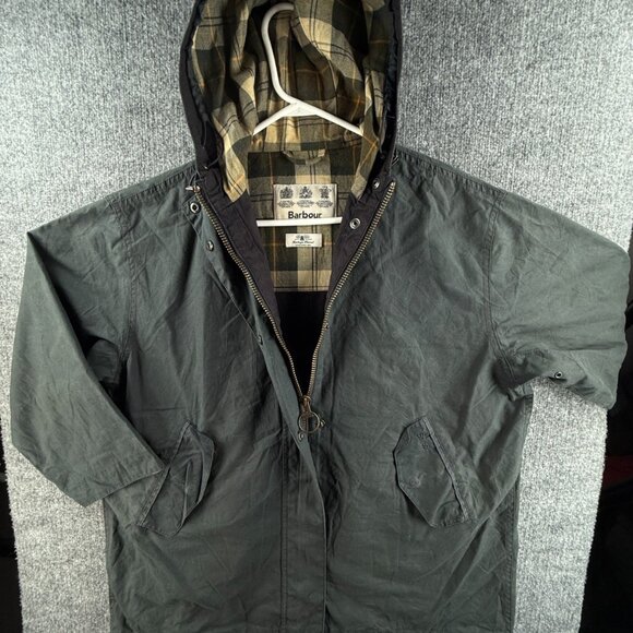 Barbour Rain Parka Heritage Brand Waxed Jacket Women Blue Hooded Size 6 US