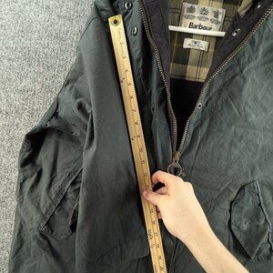Please note: Waxed jackets naturally develop a distinct wax/oil scent, especially when they have been worn or stored. Because they cannot be machine-washed, the waxed finish and its aroma are part of the jacket's character. This scent is normal for waxed cotton and is sometimes perceived as 'musty,' but it is simply the natural smell of the waxed finish. There is no mildew or mold. All items are stored in a smoke-free, climate-controlled, clean environment.