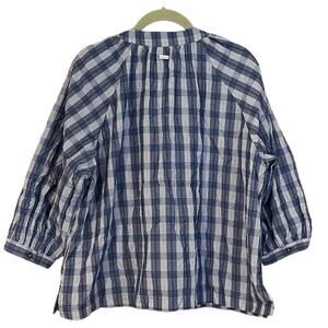 Barbour Renfew Cotton V-neck Top Bluebell Blue and White Check Size 12 NWT