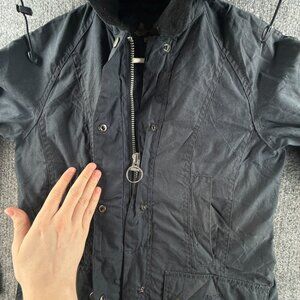 Barbour Retail Beadnell Jacket Waxed Women Full Zip Blue Hooded Size US 4 Adult
