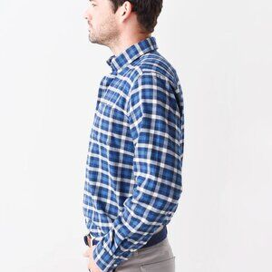 Barbour Rotheby Cotton Flannel Tailored Button Up Blue Plaid Shirt Men's size L