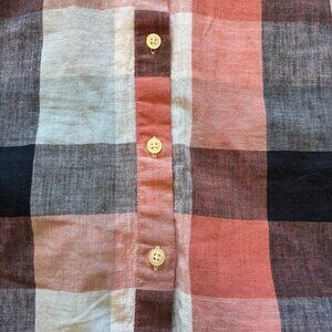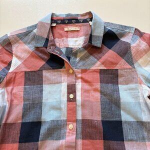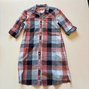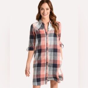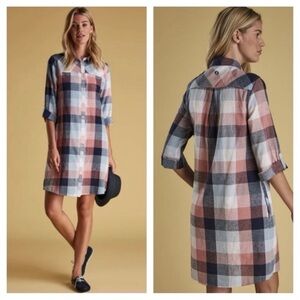 Barbour Seaglow Plaid Gingham Blue Rose Cotton Linen Shirt Dress