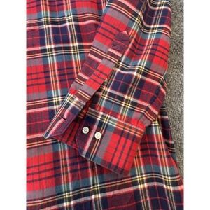 Barbour Shirt Mens XL Red Navy Tartan Plaid Button Down Long Sleeve Regular Fit