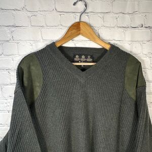 Barbour Sporting Merino Wool Sweater Mens XL V Neck Loden Shoulder Elbow Patches MKN0005OL71