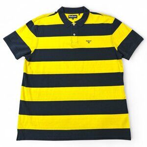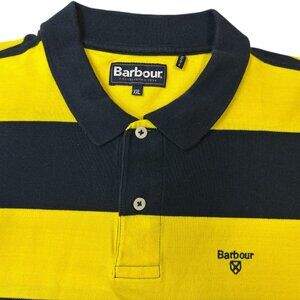 Barbour Stripe Polo Shirt Men's sz XXL Yellow Navy Blue Preppy Classic Nautical