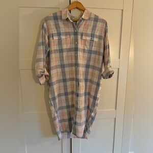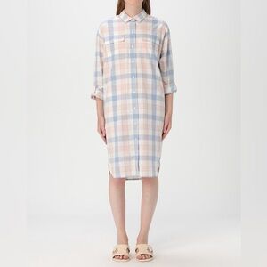 Barbour Summer Millcross Dress Cotton Linen Plaid Midi Size 6