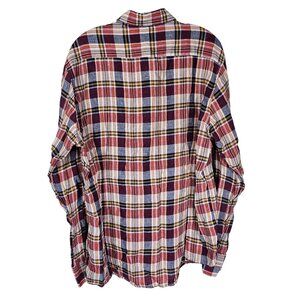 Barbour Tailored Fit Linen Shirt XL Red Plaid Preppy Coastal Lightweight Resort