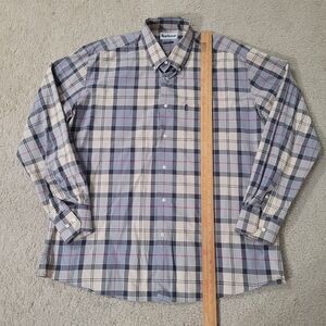 Barbour Tailored Fit Mens XL Black Tan Plaid Button Down LS Preppy