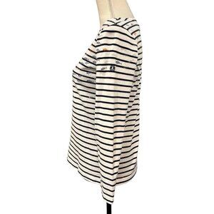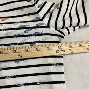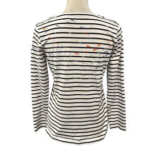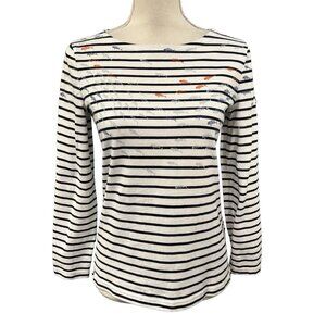 Barbour Top Womens 6 White Blue Striped Fish Print Boat Neck Nautical Preppy
