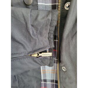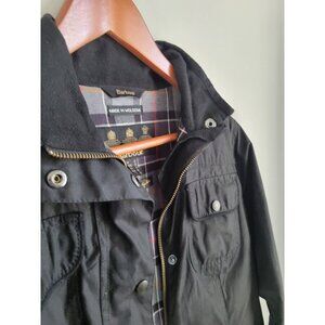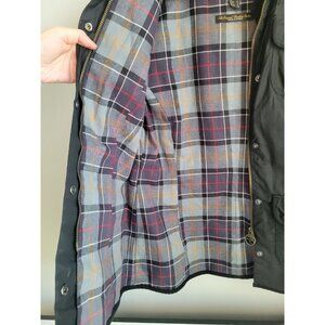 Barbour Utility Coat Waxed Jacket L1093 Womens UK 12 US 8 M Black Tartan Plaid