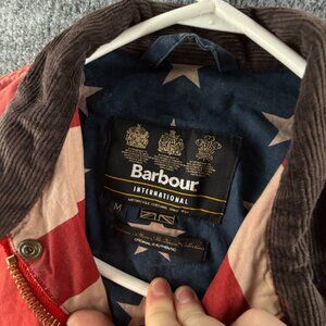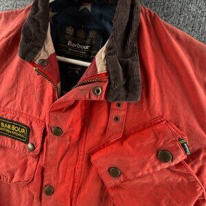 Barbour Washington Waxed Jacket Women Full Zip Red Size Medium Steve Mcqueen