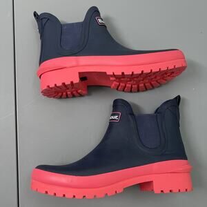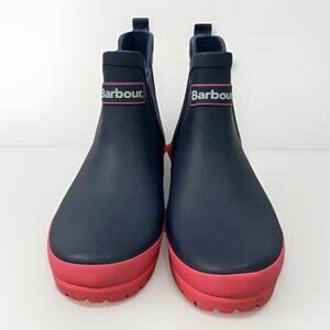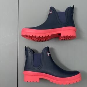 Barbour Wilton Chelsea Boot Size 5 Navy Pink Rain Waterproof Welly Shoes