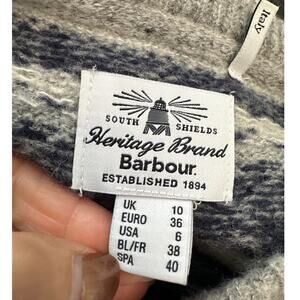 Barbour Women's Audrey Navy/Gray Fair Isle Boat Neck Sweater, Size 6, Like New