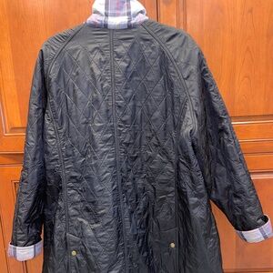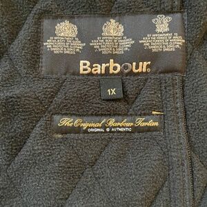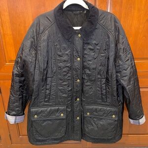 Rarely worn, hard to find plus size Barbour quilted jacket described by Barbour as "luxuriously warm jacket is constructed with a diamond-quilted outer and a super-soft fleece lining. Handwarmer pockets add extra winter practicality, while a contrast cord collar completes the signature look.” Very generous sizing will likely fit size 2X and size 20/22 women. Stylish and warm.