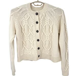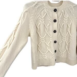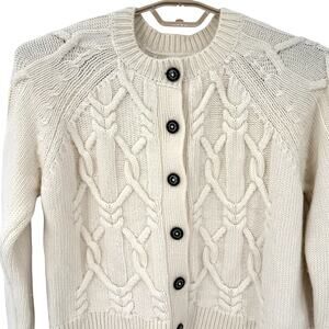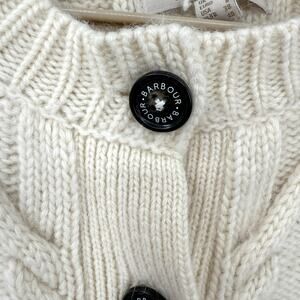 Barbour Womens Lorelei Fisherman Cable knit Cardigan Sweater Cream Size 6