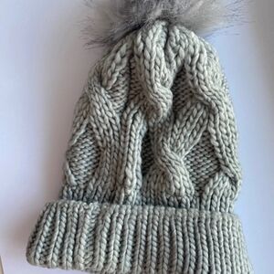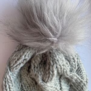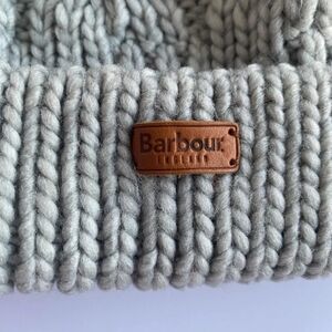Barbour Women's Pom Pom Beanie Hat Cable Knit One Size Gray