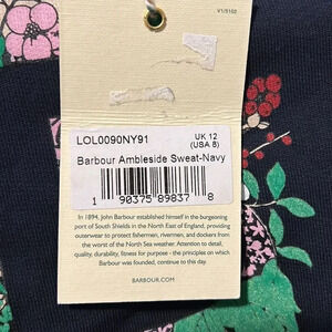 Barbour Women Ambleside Sweatshirt Navy Sz 8 NWT