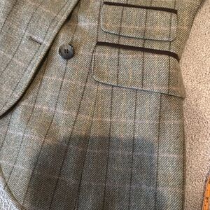 Exquisite Barbour riding jacket. Size UK 10/US 6. Perfectly tailored in sage green wool with brown and rose checks. Fully lined in cotton.