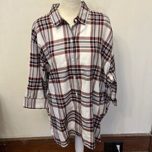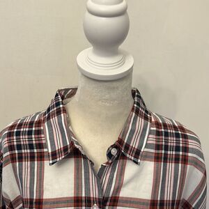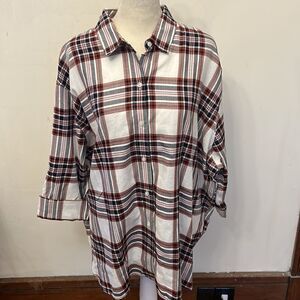 Barbour cloud check rollable sleeves button front top Size 10 New
