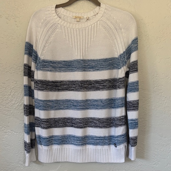 Barbour women’s 100% cotton knit White & Blue Striped pullover Sweater 12
