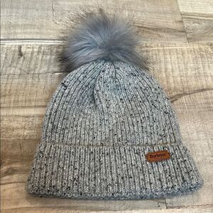 Barbour wool blend pompom heathered gray beanie winter hat. New without tags.