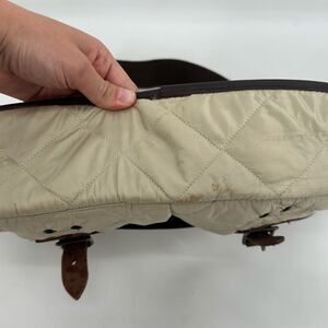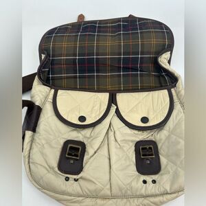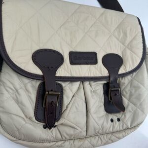 Barbour 8912 Quilted Tarras Bag Beige Brown Leather *flaws