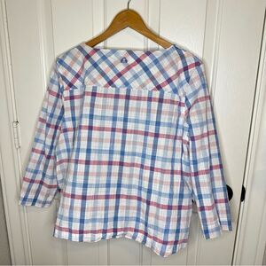 Barbour Harbourside Blue Pink White Checked Cotton Tie Waist Blouse Sz 14 Preppy