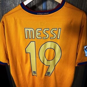 Barcelona 2006/2008 Away Jersey – Lionel Messi #19 – Size L – Orange Nike Shirt