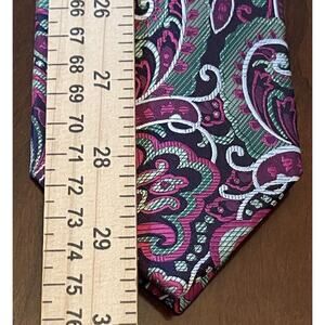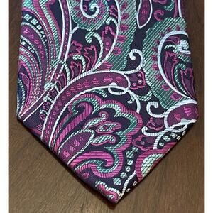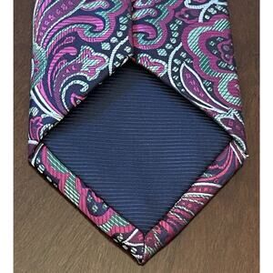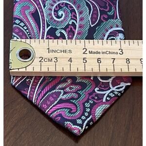 Add a touch of elegance to your outfit with this Barcelona Pink Green 100% Polyester Men's Neck Tie Made In China. The paisley pattern adds a unique touch to the tie, while the classic length and width make it a versatile accessory. Perfect for weddings or any formal event, this designer tie is sure to impress.