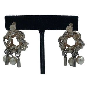 Barclay Pearl Silver tone Dangle Drop Clip On Earrings Mid century Classic