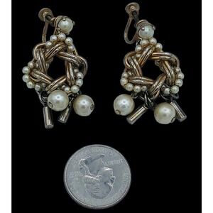Barclay Pearl Silver tone Dangle Drop Clip On Earrings Mid century Classic.
