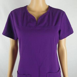 Barco Grey's Anatomy Purple V Split Neck Signature Scrub Top Two Pocket Small