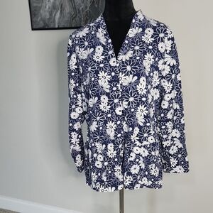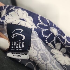 Add a touch of style to your workwear with this Barco Uniforms scrub top in a vibrant navy blue and white floral print. Crafted from 100% cotton, this top is lightweight, breathable, and perfect for long shifts.
