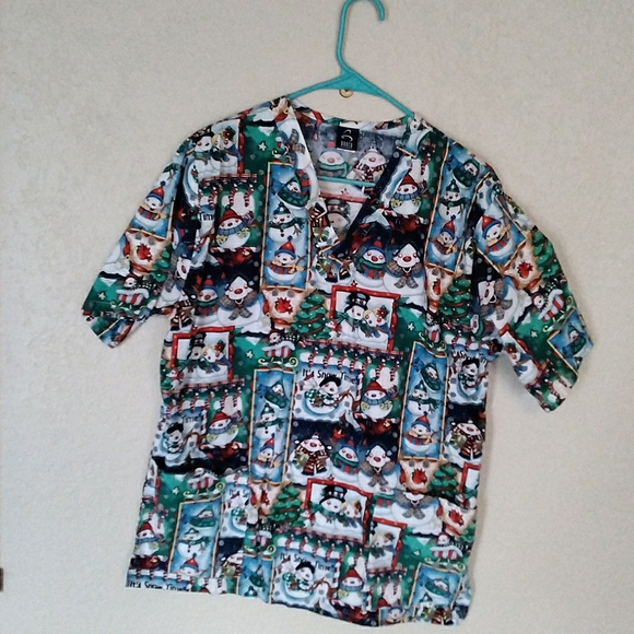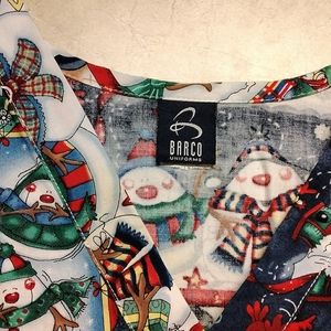 Barco Uniforms Scrubs Top, Size Medium with Snowman ⛄ Theme. V Neck with 2 pockets.