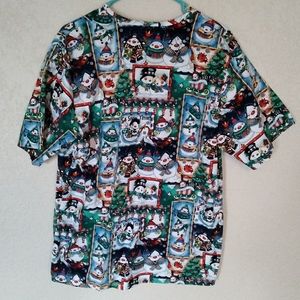 Barco Uniforms Scrubs Top Sz Medium Snowman Theme