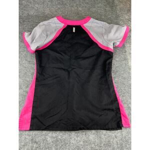Stylish women's top by Barco Uniforms. Features a black body with pink accents. Comfortable and professional design.