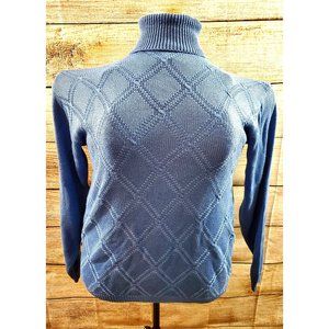Pretty and comfy, women's knit turtleneck sweater, solid blue color casual pullover for autumn and winter. The brand is Barcode, and the size is Large. The sweater is in great condition.