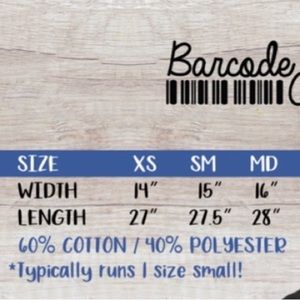 New. Never worn Black Barcode Workout tank. Size M 60%, cotton 40% polyester.