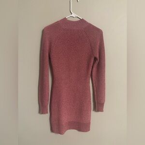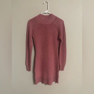Bardot Adeline Lurex Knit Sweater Mini Dress Mock Neck Long Sleeve Pink Size XS