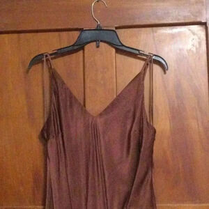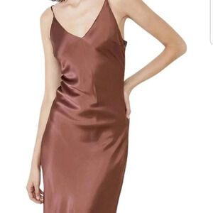 Bardot Anja Brown Silky Satin Midi Long Dress