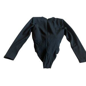 Bardot Anya Bodysuit Black Long Sleeve Knot Waist Deep Plunge Size 8 Medium