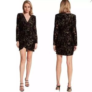 Bardot Ariela Mini Faux Wrap Long Sleeve Cocktail V Neck Dress Size 6 Small