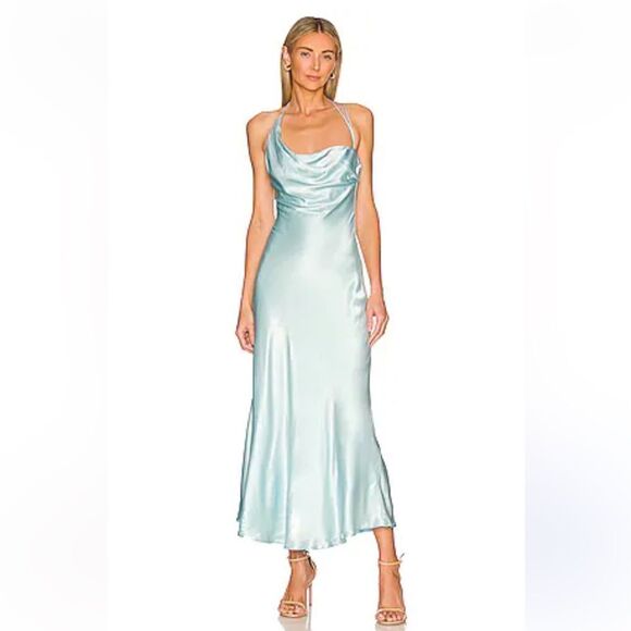 Bardot Astrid Midi Slip Dress in Mint blue satin Revolve New L
