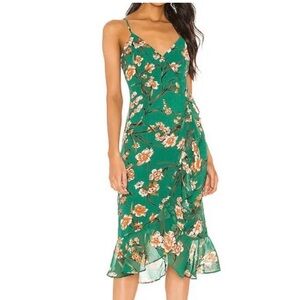 Bardot Asymmetrical Dress in Green and Peach Floral