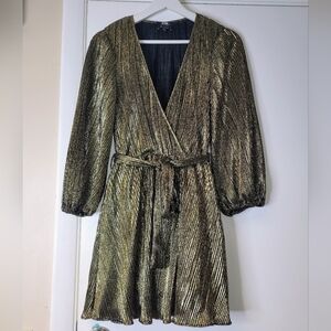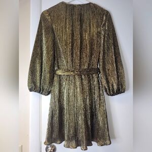 Bardot Bellissa Gold Metallic Plissé Dress Size XS