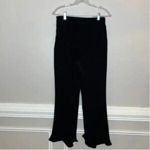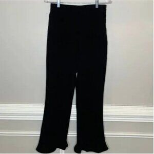 The Frill Hem Pant features a high waist, slip fit, frilled cuffs and cropped length.