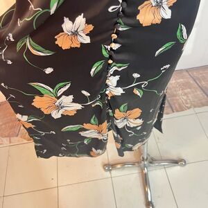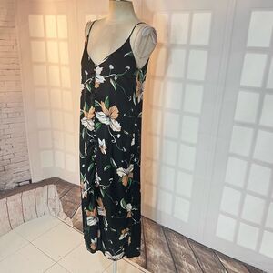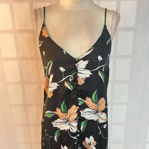 Bardot Black Hibiscus Floral Satin Button Front Sleeveless Slip Midi Dress Size 6